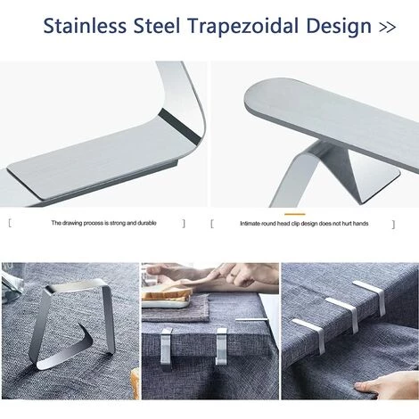Matériel: Ces clips nappe sont faits en acier inoxydable, solide et durable,servir pendant une longue période.