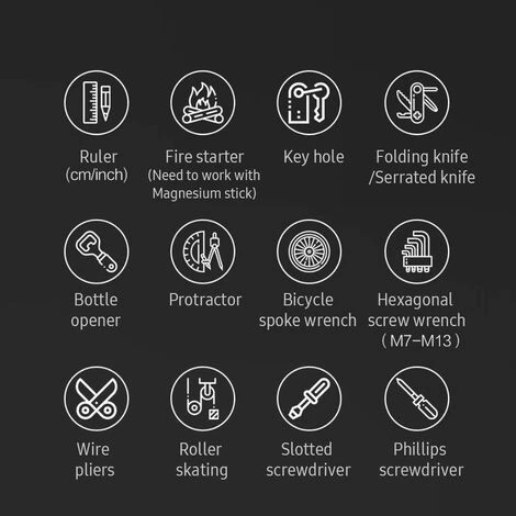 Multifonctionnel – Un outil multifonction 28-en-1 pliable pratique: pince métallique, manchon hexagonal, balance, couteau à corde, ouvre-bouteille, tournevis plat et plus encore.