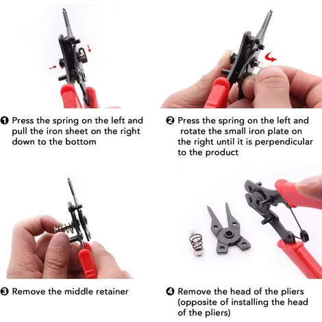 【Ensemble 4 en 1】Quatre paires de buses, dont deux paires de buses droites à 180° et deux paires de coudes à 90° et 45°. Différents trous de buse peuvent être ajustés en fonction de la nécessité de travailler vers l’intérieur ou vers l’extérieur. 【Matériau durable】 Fabriqué en acier à haute teneur en carbone, haute résistance, durable, longue durée de vie. Conception de la texture de la poignée, antidérapante.【Large gamme d’applications】Quatre buses pour répondre à différents besoins. Outil idéal pour retirer et monter les bagues de retenue intérieures et extérieures.【Flexible et interchangeable】En changeant la tête de serrage à différents angles, il est facile de retirer ou d’installer la bague inclinable dans différentes positions. L’opération de remplacement est également simple, simplement en déverrouillant le ressort argenté qui maintient la tête de serrage en place. 【Garantie sans souci】 Si vous avez des questions sur nos outils, n’hésitez pas à nous contacter pour une protection.