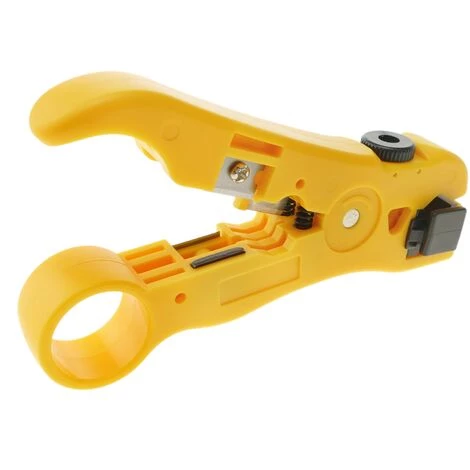 Outil universel de coupe/épluchage qui remplit deux fonctions: couper et peler. Compatible avec les câbles coaxiaux type RG59, RG6, RG7 et RG11. Il est également compatible avec les câbles téléphoniques et les câbles réseau jusqu’à 8 fils car il est possible d’ajuster le diamètre désiré. Comprend une lame pour couper le câble rapidement et en toute sécurité. Très utile pour les installateurs ou similaires.