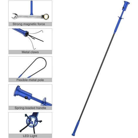 Facile à utiliser: structure en acier alliage d’une pièce et poignée élastique finale, facile à maintenir et à utiliser. L’extrémité avant de la poignée peut facilement saisir l’objet avec quatre pattes rétractables. Ampoule LED: La poignée est équipée d’une ampoule à LED, contrôlée par le bouton noir pour augmenter la luminosité de l’obscurité. La lumière LED est alimentée par 3 piles (à l’exclusion).
