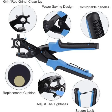 – Conçu pour percer des trous nets dans les ceintures, les sacs, les harnais et les selles, les chaussures, les sandales, les colliers pour animaux de compagnie, les cartes d’identité et de magasin et pour de nombreux projets d’artisanat différents.