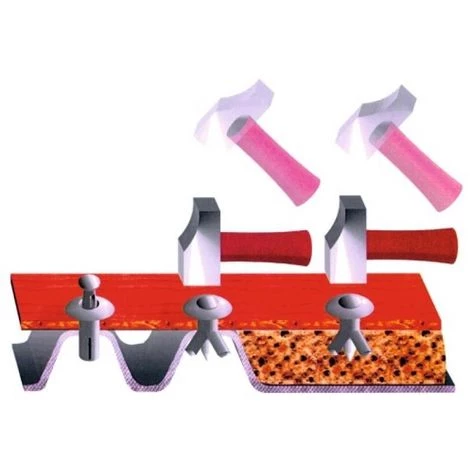 Permet de réaliser un assemblage rapide et résistant par simple coup de marteau sur la tête du clou, pour des trous borgnes ou débouchant dans le bois, le béton, la brique, le plastique ou le bardage.