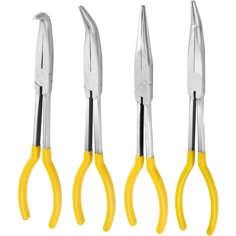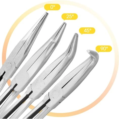 ? Pratique : pince allongée de 11 pouces, pince à bec effilé de 4 pouces – angle droit de 90 degrés, angle de 45 degrés, angle de 25 degrés, la pince droite peut facilement gérer les obstacles, saisir les petites pièces et les fils pliés