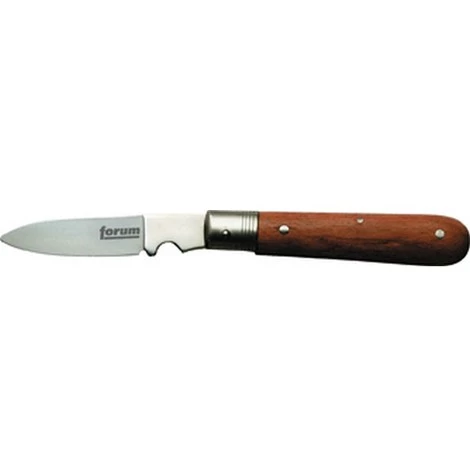 Couteau d’électricien, Modèle : 1 pièce, Matériau de la lame Acier carbone, Lame Lisse, avec encoche., Matériau de la poignée : Bois, Longueur totale : 202 mm, Longueur de la lame : 86 mm – Rabattable