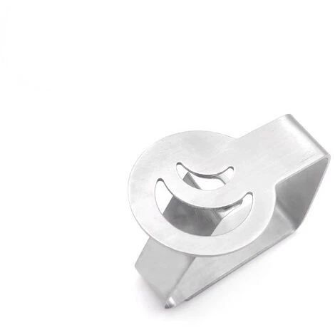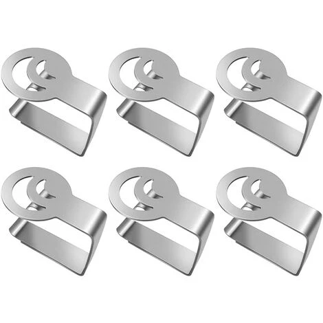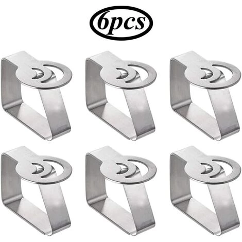 Nom du produit : pince à nappe en acier inoxydable ; Couleur : argent ; Taille : 6,5 x 5 . Le forfait comprend six pinces à nappe.