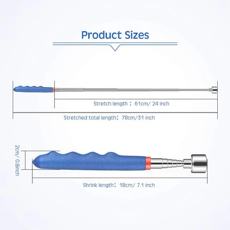 « Matériau de qualité : ces bâtons magnétiques télescopiques sont fabriqués à partir de tubes télescopiques en acier inoxydable, qui sont durables, difficiles à casser et ont une longue durée de vie ; la poignée coussinée offre une expérience confortable tout en vous aidant à mieux contrôler ^