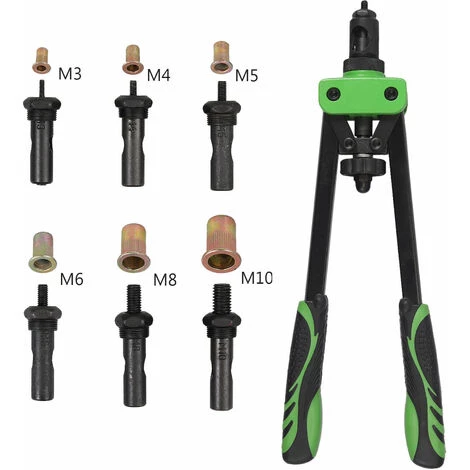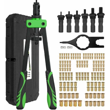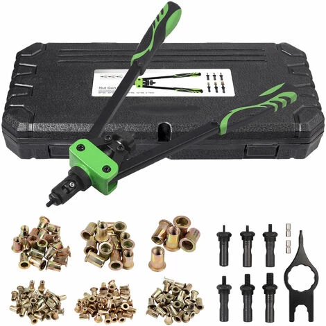 - 【Divers accessoires】 Complet avec 6 mandrins interchangeables (métriques M10, M8, M6, M5, M4, M3) et 150 écrous à riveter. Le mandrin M6 est déjà sur l’outil, donc la boîte en plastique est vide