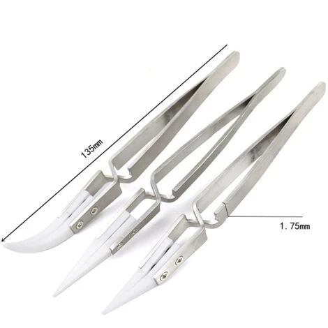 3 Différentes formes de pointes en céramique: Ces pointes en céramique sont pointues et incurvées pour un travail de précision et des prises fermes sur les bobines chaudes ou les circuits électroniques. L’un des outils les plus nécessaires pour tout reconstructeur RDA / RTA ou électricien.