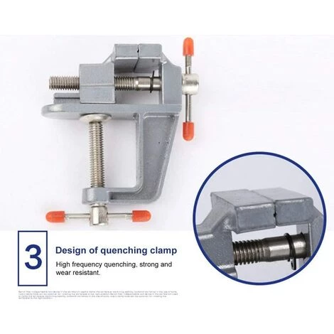 [Idéal pour la menuiserie] L’étau est idéal pour les petites boiseries ou les projets sur lesquels vous travaillez peut-être. Fixez n’importe quel bloc de bois en place pour poncer, poncer, détailler, percer, sculpter, ciseler, etc.Retirez la pièce de serrage de la pince-étau et le bouton de réglage fin/grossier contrôle la pression des mâchoires pour obtenir un travail fin, ce qui vous facilite la tâche. [Facile à utiliser] Cet étau est très facile à utiliser. Il peut être serré là où vous devez travailler, il suffit de tourner la barre supérieure pour ouvrir et fermer le luminaire sur le bureau, puis de tourner la vis pour serrer fermement les petits objets à traiter. Très pratique et pratique. [Dimensions] Ce mini étau mesure 83×85 mm, est compact et exquis, et ne prend pas beaucoup de place. L’étau d’établi ne sera pas interrompu par un fil tombé et peut être utilisé pendant de nombreuses années pour maintenir fermement l’objet en place lors de l’utilisation sur l’établi. [Largement application] Il convient parfaitement à la maison, à l’atelier, à l’usine et à un usage professionnel. Il offre des fonctions de serrage, de sertissage et de roulage pour des applications légères, telles que la coupe de tuyaux, le perçage, le collage, le travail du bois, le traitement des métaux, le sciage, etc. Convient aux travaux de précision tels que les rivets, les montres, les bijoux, etc.Couleur du produit : argent