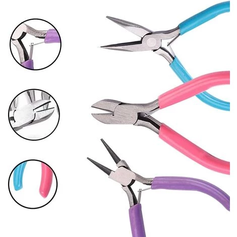 Artisanat exquis : Les pinces à bijoux sont fabriquées en acier solide de haute qualité, durables. Les poignées en plastique de différentes couleurs sont résistantes et faciles à distinguer.