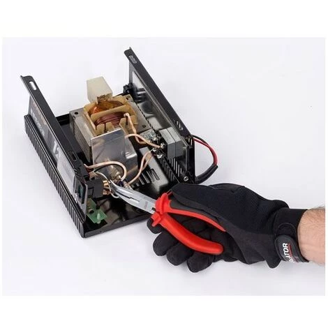 Cette pince à bec long coudé de Kreator est idéale pour tout travaux électriques. Vous pouvez l’utiliser pour maintenir ou plier de petits câbles (électriques). Les poignées soft grip de cette pince ont un revêtement antidérapant, et la pince mesure 150 mm de long. La pince est fabriqué de chrome vanadium robuste.