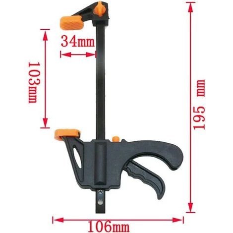 Les pinces à dégagement rapide pour le bois avec des machoires en plastique ne déformeront pas ou ne rayeront pas la pièce à travailler, et la poignée a une gachette à pression peut facilement serrer la pince.