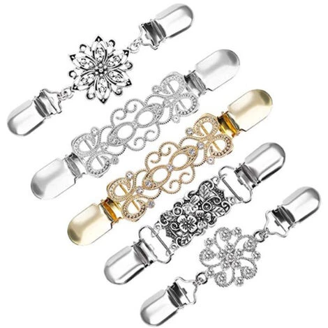 4Pcs Pinces à Cardigan, Clips de Cardigan pour Femme Clips de Pull Vintage, Pinces pour Chandail avec des Fleurs Strass Pinces à Pull Broche Rétro Cardigan Clip de Broche pour Femme