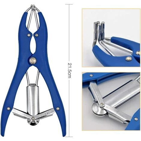 Facile à utiliser : sans avoir à faire une visite chez le vétérinaire, cette pince portable peut être manipulée d’une seule main à la maison sans procédures consécutives ; taille du castrateur : 21 x 11 cm ; diamètre intérieur de ces bandes au repos : 7 mm ; diamètre extérieur : 15 mm ; épaisseur : 7 mm.