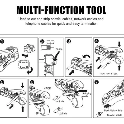 Application : deux lames de dénudage, une opération peut couper et dénuder un câble téléphonique plat (4P/6P/8P).