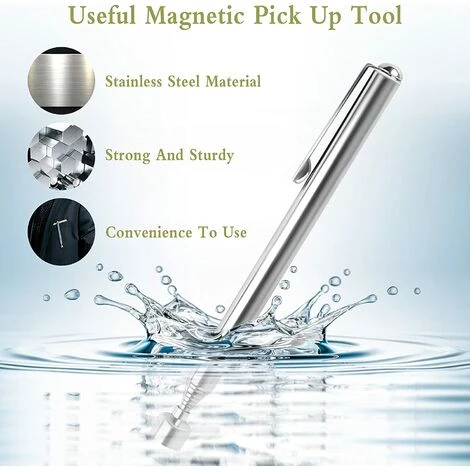 Matériau de haute qualité : l’outil de ramassage magnétique est fabriqué en acier inoxydable de haute qualité, qui est non seulement robuste et durable, pas facile à casser, mais également étanche, antirouille, anti-corrosion et a une longue durée de vie. la vie.