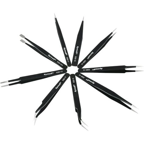 la description: Un lot de 9 pinces différentes de précision et de haute qualité pour tous les types de travail minutieux. Le revêtement Anti décharges électrostatiques (ESD) aide à protéger les composants électroniques délicats des dommages statiques. Fabriquée avec le meilleur acier inoxydable, ces pinces sont non-magnétiques et résistantes à la plupart des acides et des agents corrosifs. La finition noir mat fournit une excellente maniabilité antidérapante. Usinée avec précision pour un alignement parfait et une adhérence parfaite au bout des doigts.Spécifications: Matériel: acier inoxydable avec revêtement ESD Astuce: non magnétique Poids du paquet: 0.2kg/ 6.8 once Couleur: NoirLe pack inclut: 1 pièce * ESD-10 : bout fin et droit (110 mm) 1 pièce * ESD-11 : bout fin et droit (140 mm) 1 pièce * ESD-12 : bout fin et droit (135 mm) 1 pièce * ESD-13 : pointe bêche arrondie, droite (115 mm) 1 pièce * ESD-14 : pointe super fine, droite (110 mm) 1 pièce * ESD-15 : pointe fine, en angle (120 mm) 1 pièce * ESD-16 : poids lourd bout pointu (130 mm) 1 pièce * ESD-17 : pointe fine, 25 ° d’angle (122mm) 1 pièce * ESD-34A: (120mm) 1 pièce * Crowbar (150mm) 1 pièce * Paquet