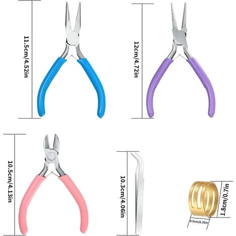 ăCe que vous obtiendreză Vous recevrez 3 pinces Ă bijoux, y compris une pince Ă bec effilĂ©, une pince Ă bec rond, une pince coupante et une pince Ă Ă©piler, un ouvre-anneau, ce qui est suffisant pour votre fabrication de bijoux. »