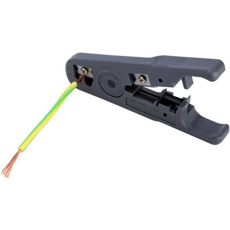 1. DĂ©nudeur de fil plat, en insĂ©rant le câble entre les lames du dĂ©nudeur. Sertissez les poignĂ©es, tenez le câble perpendiculairement, puis retirez-le de l’outil. Disponible pour les câbles suivants :