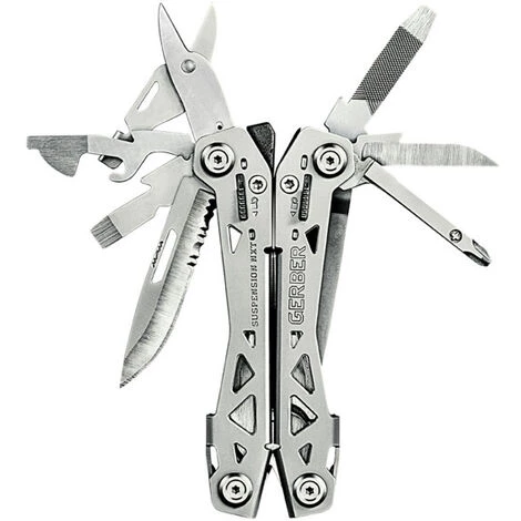15 fonctions utiles pour toutes les situations telles que la pince, la cisaille, l’ouvre-bouteille, l’alène, la règle, la lime ou le tournevis plat/cruciforme