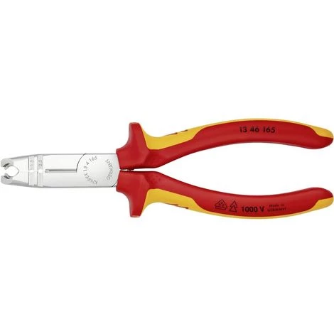 Type de produit: Pince à dégainerPour dégainer et dénuder rapidement tous types de câbles ronds et hydrofuges usuels (par ex. câbles NYM). Accès facilité dans les boîtes d’encastrement profondes grâce à la forme élancée de la tête et à l‘inclinaison optimale du coupe-gaine. Dégainage facile des câbles sans endommager les fils grâce aux arrêtes coupantes circulaires avec butée de profondeur. Peut être utilisée de manière universelle : trous de dénudage de précision pour conducteurs de 0,75 – 1,5 et 2,5 mm² Avec tranchant de côté pour coupe de conducteurs, fils, petites vis et clous ou pointes. Tranchants trempés par induction à environ 61 HRC pour une haute résistance à l‘usure. 30 % plus légère que les pinces similaires. Acier vanadium, forgé, trempé à l’huile.