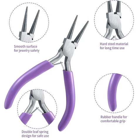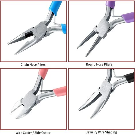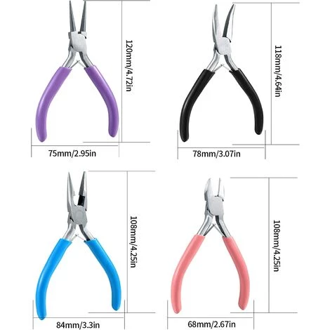 – Le coupe-fil latéral est conçu pour couper les fils souples, les pinces à bec long et les pinces à bec rond peuvent être utilisées pour perler, tenir l’anneau de saut, enrouler les fils.