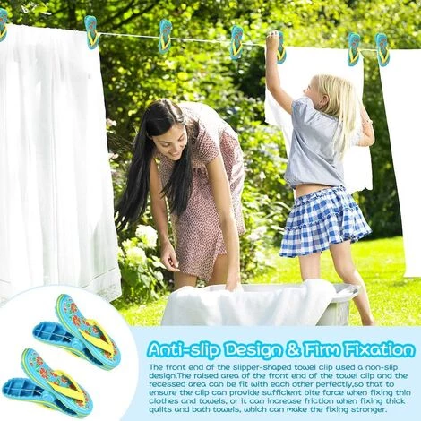 Les pinces à serviettes de plage sont légères et faciles à ranger ou à transporter. Les pinces à linge sont idéales pour des vacances au bord de la mer. Vous pouvez attacher des serviettes à une chaise de plage. Vous pouvez également l’utiliser à la maison pour étirer et serrer votre couverture, votre couette ou vos vêtements.