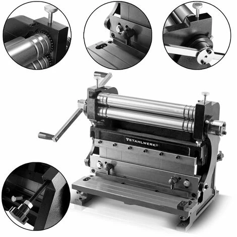 - Appareil combinĂ© 3 en 1 pour couper, rouler et plier avec prĂ©cision les tĂ´les jusqu’Ă 1 mm.