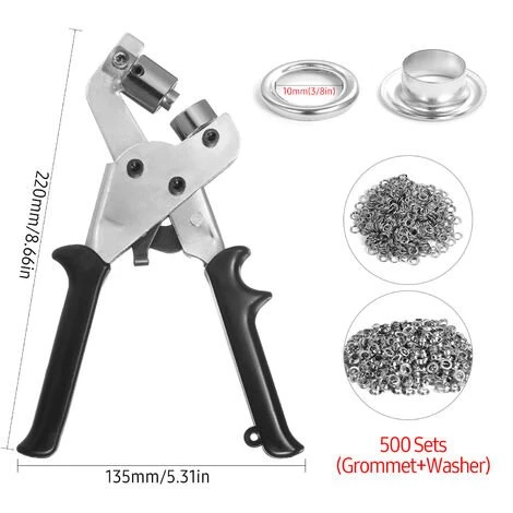 Cette trousse à outils à œillets est fabriquée dans un matériau de première qualité et est facile à utiliser. Il contient un perforateur manuel et 500 jeux d’œillets, adaptés pour ajouter des ornements dans des vêtements, des chaussures, un sac, une tente, un rideau, une bannière, des projets de bricolage et plus encore !