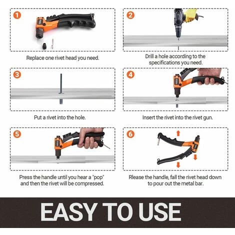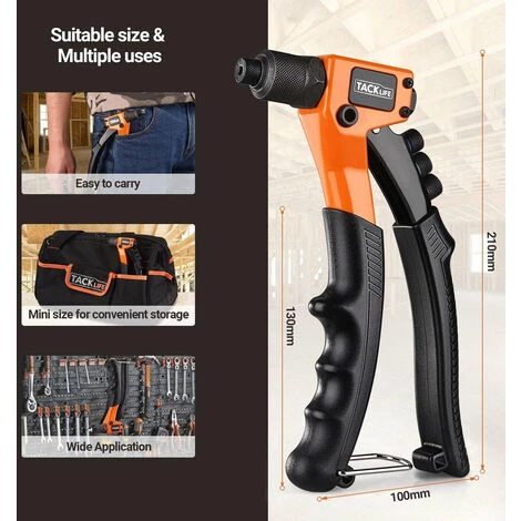 ??Petit mais puissant? : cette riveteuse à main est très pratique mais peut gérer trois types de rivets : les rivets en aluminium, en acier et en acier inoxydable. Parfait pour des projets comme la construction, la réparation ou la fabrication artisanale.
