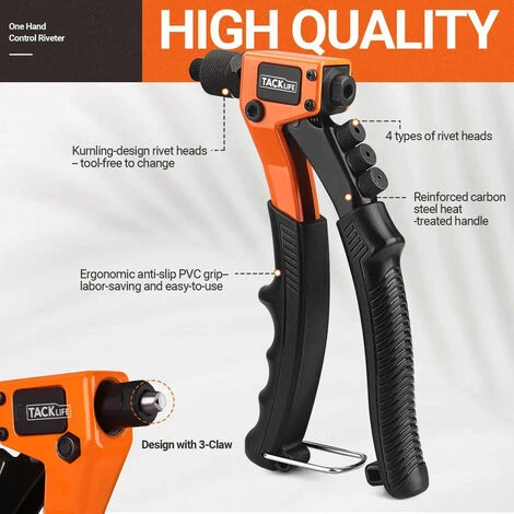 ??Outil de rivetage à une main?: Conception ergonomique, poignées rembourrées antidérapantes, matériau thermo-plastique-caoutchouc (TPR) pour un ajustement et un confort maximum