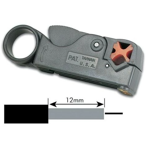 Dénude des câbles RG58/59/62/6/3C2V, etc. sans remplacement les lames. Dénudage de câbles de 4mm/6mm/8mm/12mm. Marques du V-bloc : 6=RG6, 8=RG58 et 3C2V, 9=RG59 / R662.