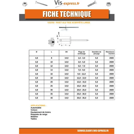 Rivet Aluminium Tige acier 4.8X20 Epaisseur de serrage 13A15 Tete large ALXRivet Aluminium Tige acier 4.8X20 Epaisseur de serrage 13A15 Tete large ALX