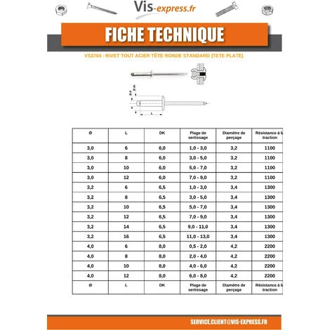 RIVET TOUT ACIER BRUT ZING 4X6 EPAISSEUR DU PANNEAU DE 0.5A2 TETE PLATERIVET TOUT ACIER BRUT ZING 4X6 EPAISSEUR DU PANNEAU DE 0.5A2 TETE PLATE